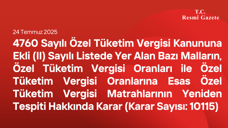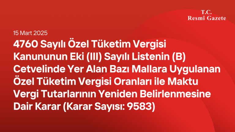 4760 Sayılı Özel Tüketim Vergisi Kanununa Ekli (IV) Sayılı Listede Yer Alan Bazı Malların Özel Tüketim Vergisi Oranlarına Esas Özel Tüketim Vergisi Matrahlarının Yeniden Tespiti Hakkında Karar (Karar Sayısı: 10521)