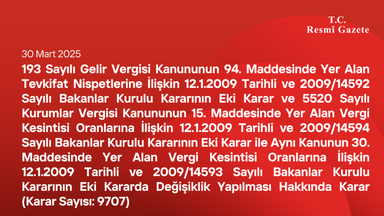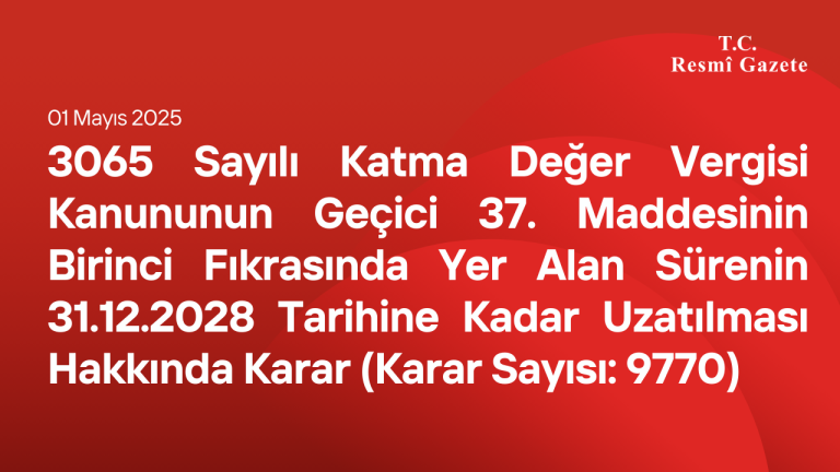 193 Sayılı Gelir Vergisi Kanununun Geçici 67. Maddesinin On Dokuzuncu Fıkrasında Yer Alan Sürenin 31/12/2030 Tarihine Kadar (Bu Tarih Dâhil) Uzatılması Hakkında Karar (Karar Sayısı: 10680)