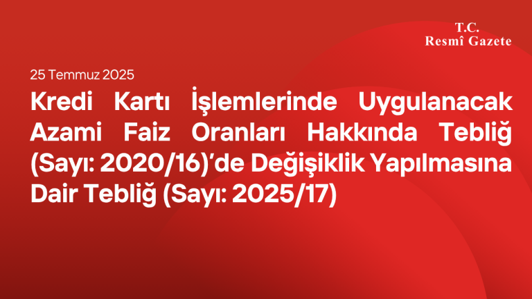 Kredi Kartı İşlemlerinde Uygulanacak Azami Faiz Oranları Hakkında Tebliğ (Sayı: 2020/16)’de Değişiklik Yapılmasına Dair Tebliğ (Sayı: 2025/28)