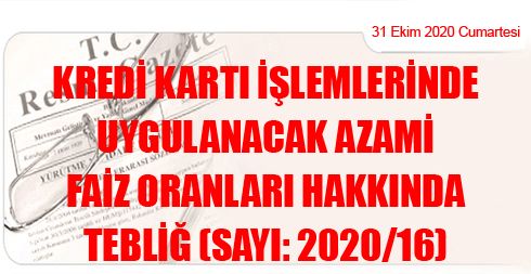 Kredi Kartı İşlemlerinde Uygulanacak Azami Faiz Oranları Hakkında Tebliğ (Sayı: 2020/16)