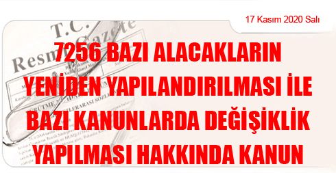 7256 Bazı Alacakların Yeniden Yapılandırılması ile Bazı Kanunlarda Değişiklik Yapılması Hakkında Kanun