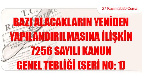 Bazı Alacakların Yeniden Yapılandırılmasına İlişkin 7256 Sayılı Kanun Genel Tebliği (Seri No: 1)