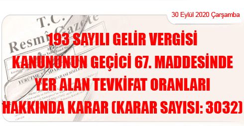 193 Sayılı Gelir Vergisi Kanununun Geçici 67 nci Maddesinde Yer Alan Tevkifat Oranları Hakkında Karar (Karar Sayısı: 3032)