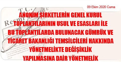Anonim Şirketlerin Genel Kurul Toplantılarının Usul ve Esasları ile Bu Toplantılarda Bulunacak Gümrük ve Ticaret Bakanlığı Temsilcileri Hakkında Yönetmelikte Değişiklik Yapılmasına Dair Yönetmelik