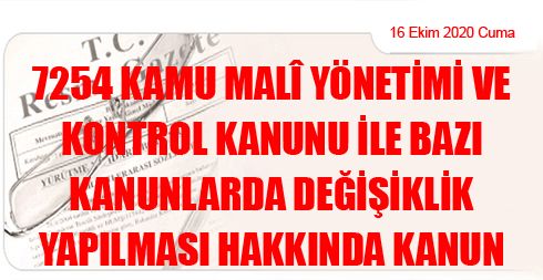 7254 Kamu Malî Yönetimi ve Kontrol Kanunu ile Bazı Kanunlarda Değişiklik Yapılması Hakkında Kanun