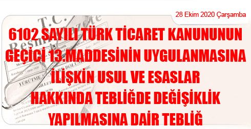 6102 Sayılı Türk Ticaret Kanununun Geçici 13. Maddesinin Uygulanmasına İlişkin Usul ve Esaslar Hakkında Tebliğde Değişiklik Yapılmasına Dair Tebliğ