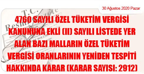 4760 Sayılı Özel Tüketim Vergisi Kanununa Ekli (II) Sayılı Listede Yer Alan Bazı Malların Özel Tüketim Vergisi Oranlarının Yeniden Tespiti Hakkında Karar (Karar Sayısı: 2912)