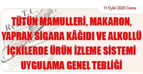 Tütün Mamulleri, Makaron, Yaprak Sigara Kâğıdı ve Alkollü İçkilerde Ürün İzleme Sistemi Uygulama Genel Tebliği