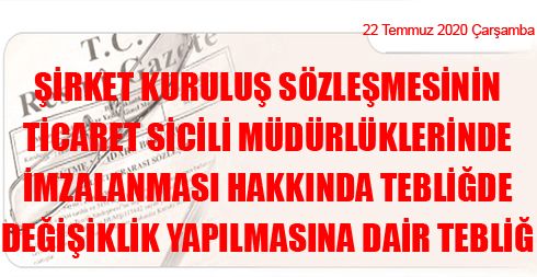 Şirket Kuruluş Sözleşmesinin Ticaret Sicili Müdürlüklerinde İmzalanması Hakkında Tebliğde Değişiklik Yapılmasına Dair Tebliğ