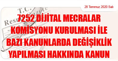 7252 Dijital Mecralar Komisyonu Kurulması ile Bazı Kanunlarda Değişiklik Yapılması Hakkında Kanun