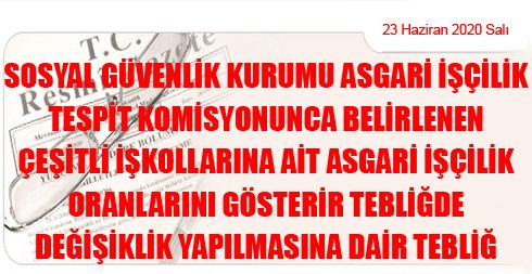 Sosyal Güvenlik Kurumu Asgari İşçilik Tespit Komisyonunca Belirlenen Çeşitli İşkollarına Ait Asgari İşçilik Oranlarını Gösterir Tebliğde Değişiklik Yapılmasına Dair Tebliğ