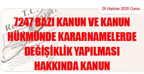 7247 Bazı Kanun ve Kanun Hükmünde Kararnamelerde Değişiklik Yapılması Hakkında Kanun