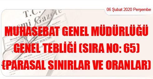 Muhasebat Genel Müdürlüğü Genel Tebliği (Sıra No: 65) (Parasal Sınırlar ve Oranlar)