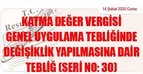 Katma Değer Vergisi Genel Uygulama Tebliğinde Değişiklik Yapılmasına Dair Tebliğ (Seri No: 30)