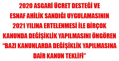 2020 Asgari Ücret Desteği ve Esnaf Ahilik Sandığı Uygulamasının 2021 Yılına Ertelenmesi ile Birçok Kanunda Değişiklik Yapılmasını Öngören “Bazı Kanunlarda Değişiklik Yapılmasına Dair Kanun Teklifi”