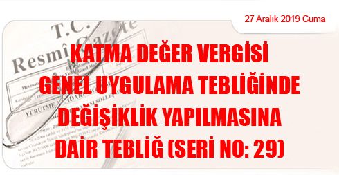 Katma Değer Vergisi Genel Uygulama Tebliğinde Değişiklik Yapılmasına Dair Tebliğ (Seri No: 29)