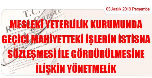 Meslekî Yeterlilik Kurumunda Geçici Mahiyetteki İşlerin İstisna Sözleşmesi ile Gördürülmesine İlişkin Yönetmelik