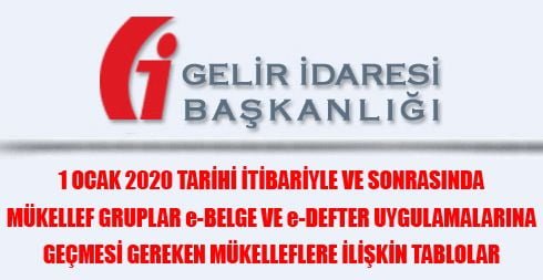 1 Ocak 2020 tarihi itibariyle ve sonrasında mükellef gruplar e-Belge ve e-Defter uygulamalarına geçmesi gereken mükelleflere ilişkin tablolar