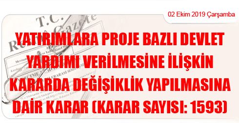 Yatırımlara Proje Bazlı Devlet Yardımı Verilmesine İlişkin Kararda Değişiklik Yapılmasına Dair Karar (Karar Sayısı: 1593)