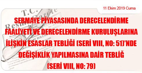 Sermaye Piyasasında Derecelendirme Faaliyeti ve Derecelendirme Kuruluşlarına İlişkin Esaslar Tebliği (Seri VIII, No: 51)’nde Değişiklik Yapılmasına Dair Tebliğ (Seri VIII, No: 79)