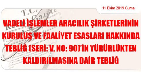 Vadeli İşlemler Aracılık Şirketlerinin Kuruluş ve Faaliyet Esasları Hakkında Tebliğ (Seri: V, No: 90)’in Yürürlükten Kaldırılmasına Dair Tebliğ