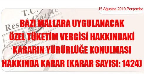 Bazı Mallara Uygulanacak Özel Tüketim Vergisi Hakkındaki Kararın Yürürlüğe Konulması Hakkında Karar (Karar Sayısı: 1424)