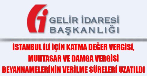 İstanbul İli İçin Katma Değer Vergisi, Muhtasar ve Damga Vergisi Beyannamelerinin Verilme Süreleri Uzatıldı