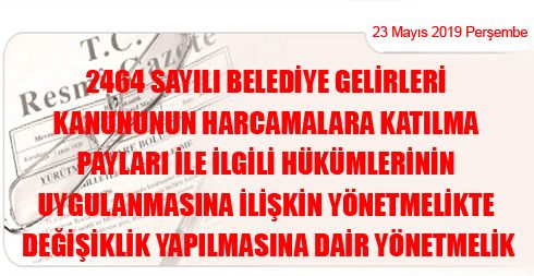 2464 Sayılı Belediye Gelirleri Kanununun Harcamalara Katılma Payları ile İlgili Hükümlerinin Uygulanmasına İlişkin Yönetmelikte Değişiklik Yapılmasına Dair Yönetmelik