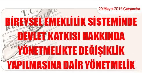 Bireysel Emeklilik Sisteminde Devlet Katkısı Hakkında Yönetmelikte Değişiklik Yapılmasına Dair Yönetmelik
