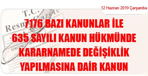 7176 Bazı Kanunlar ile 635 Sayılı Kanun Hükmünde Kararnamede Değişiklik Yapılmasına Dair Kanun