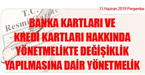 Banka Kartları ve Kredi Kartları Hakkında Yönetmelikte Değişiklik Yapılmasına Dair Yönetmelik