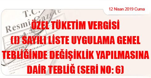 Özel Tüketim Vergisi (I) Sayılı Liste Uygulama Genel Tebliğinde Değişiklik Yapılmasına Dair Tebliğ (Seri No: 6)