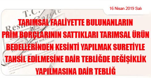 Tarımsal Faaliyette Bulunanların Prim Borçlarının Sattıkları Tarımsal Ürün Bedellerinden Kesinti Yapılmak Suretiyle Tahsil Edilmesine Dair Tebliğde Değişiklik Yapılmasına Dair Tebliğ