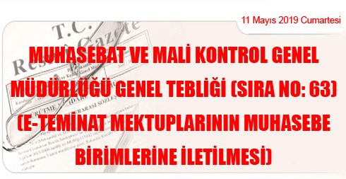 Muhasebat ve Mali Kontrol Genel Müdürlüğü Genel Tebliği (Sıra No: 63) (e-Teminat Mektuplarının Muhasebe Birimlerine İletilmesi)