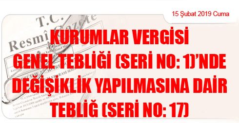 Kurumlar Vergisi Genel Tebliği (Seri No: 1)’nde Değişiklik Yapılmasına Dair Tebliğ (Seri No: 17)