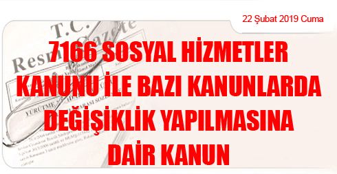 7166 Sosyal Hizmetler Kanunu ile Bazı Kanunlarda Değişiklik Yapılmasına Dair Kanun