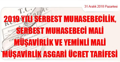 2019 Yılı Serbest Muhasebecilik, Serbest Muhasebeci Mali Müşavirlik ve Yeminli Mali Müşavirlik Asgari Ücret Tarifesi
