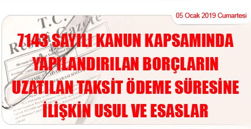 7143 Sayılı Kanun Kapsamında Yapılandırılan Borçların Uzatılan Taksit Ödeme Süresine İlişkin Usul ve Esaslar