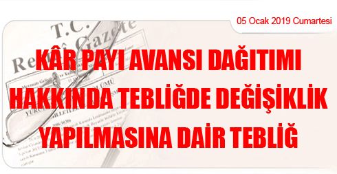 Kâr Payı Avansı Dağıtımı Hakkında Tebliğde Değişiklik Yapılmasına Dair Tebliğ