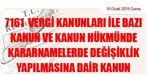 7161 Vergi Kanunları ile Bazı Kanun ve Kanun Hükmünde Kararnamelerde Değişiklik Yapılmasına Dair Kanun