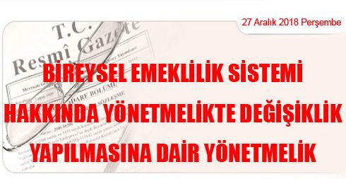Bireysel Emeklilik Sistemi Hakkında Yönetmelikte Değişiklik Yapılmasına Dair Yönetmelik