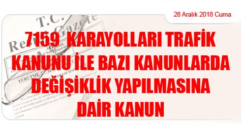 7159 Karayolları Trafik Kanunu ile Bazı Kanunlarda Değişiklik Yapılmasına Dair Kanun