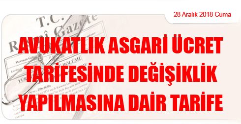 Avukatlık Asgari Ücret Tarifesinde Değişiklik Yapılmasına Dair Tarife