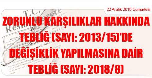 Zorunlu Karşılıklar Hakkında Tebliğ (Sayı: 2013/15)’de Değişiklik Yapılmasına Dair Tebliğ (Sayı: 2018/8)