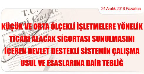 Küçük ve Orta Ölçekli İşletmelere Yönelik Ticari Alacak Sigortası Sunulmasını İçeren Devlet Destekli Sistemin Çalışma Usul ve Esaslarına Dair Tebliğ