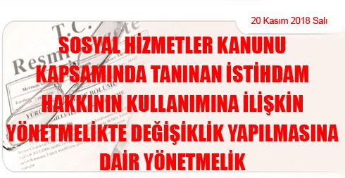 Sosyal Hizmetler Kanunu Kapsamında Tanınan İstihdam Hakkının Kullanımına İlişkin Yönetmelikte Değişiklik Yapılmasına Dair Yönetmelik