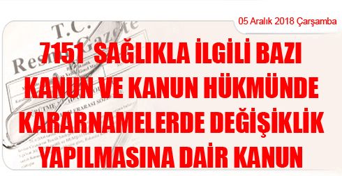 7151 Sağlıkla İlgili Bazı Kanun ve Kanun Hükmünde Kararnamelerde Değişiklik Yapılmasına Dair Kanun