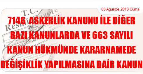 7146 Askerlik Kanunu ile Diğer Bazı Kanunlarda ve 663 Sayılı Kanun Hükmünde Kararnamede Değişiklik Yapılmasına Dair Kanun