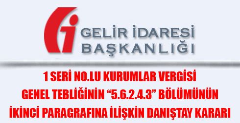 1 Seri No.lu Kurumlar Vergisi Genel Tebliğinin “5.6.2.4.3” Bölümünün İkinci Paragrafına İlişkin Danıştay Kararı
