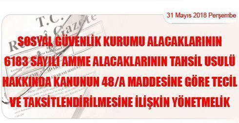 Sosyal Güvenlik Kurumu Alacaklarının 6183 Sayılı Amme Alacaklarının Tahsil Usulü Hakkında Kanunun 48/A Maddesine Göre Tecil ve Taksitlendirilmesine İlişkin Yönetmelik